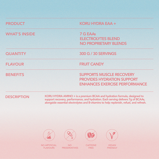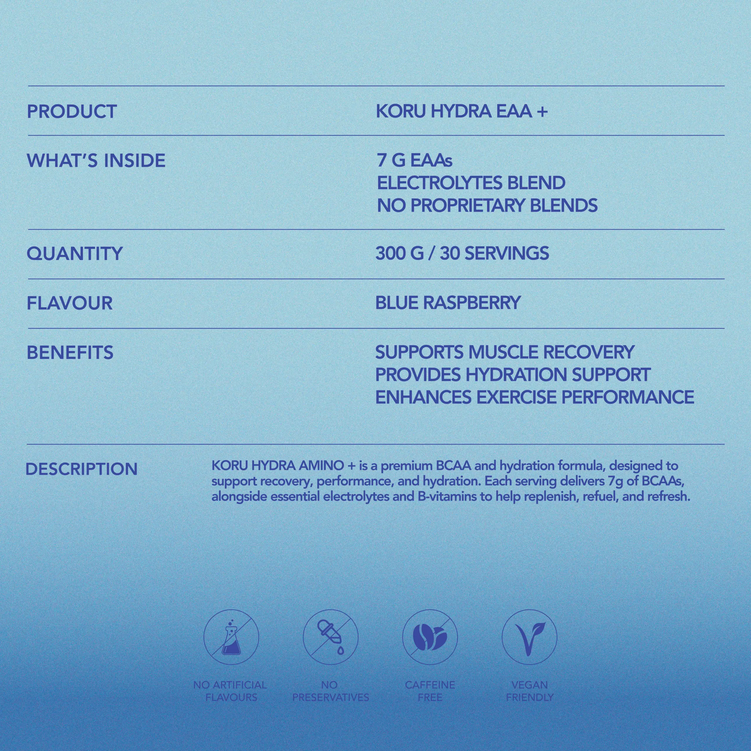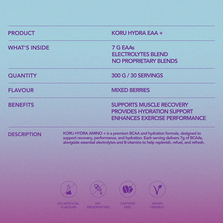 The ultimate EAAs, electrolytes, and B-Vitamins formulation for hydration, performance, and recovery.
